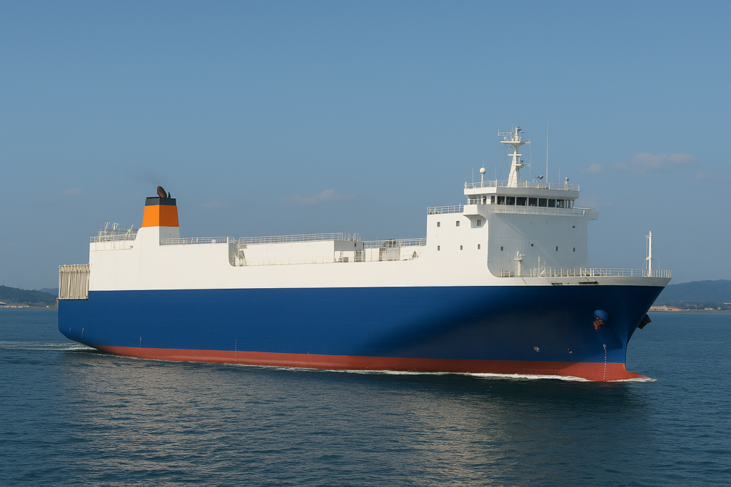 車両・トレーラーなどを運ぶ船。