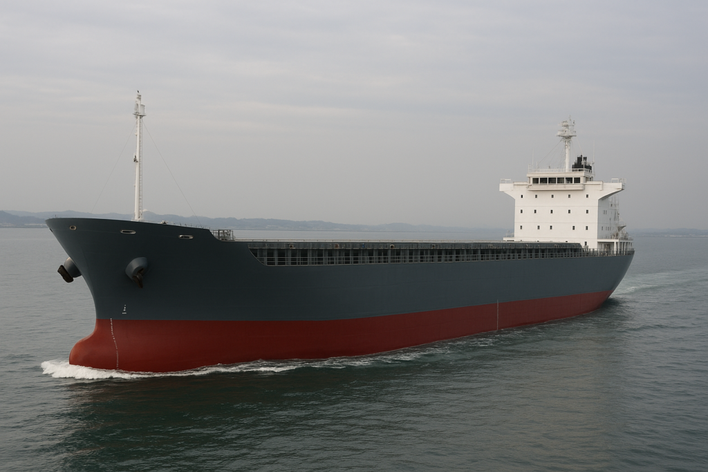 鉄鋼製品(コイル・鋼板など)を運ぶ貨物船。