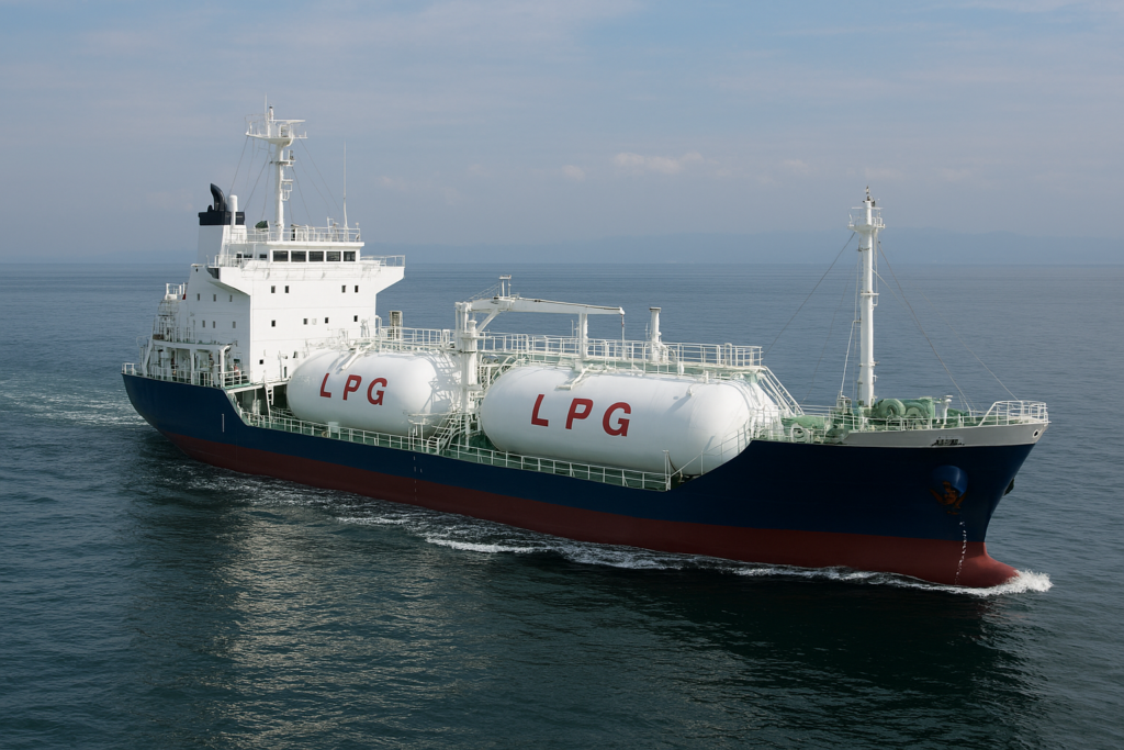 プロパン・ブタンなどの液化石油ガスを運ぶ専用船。